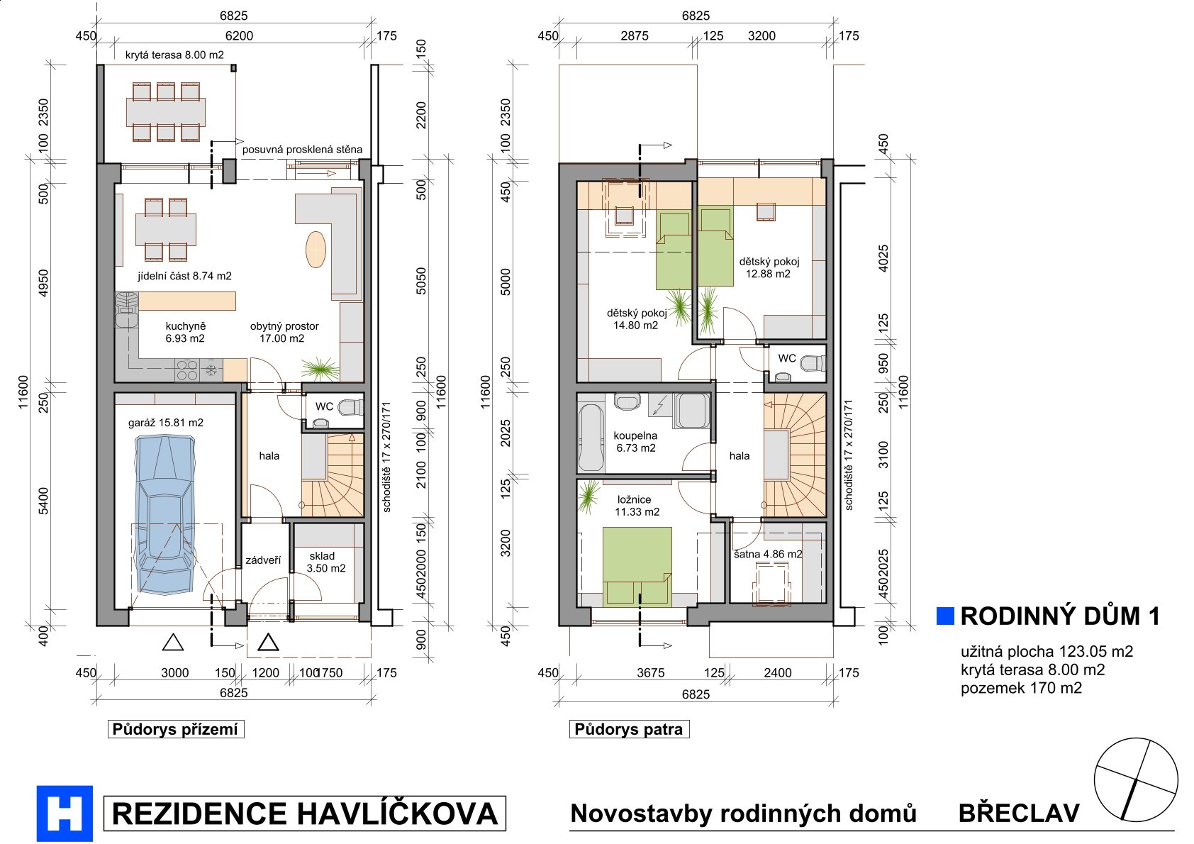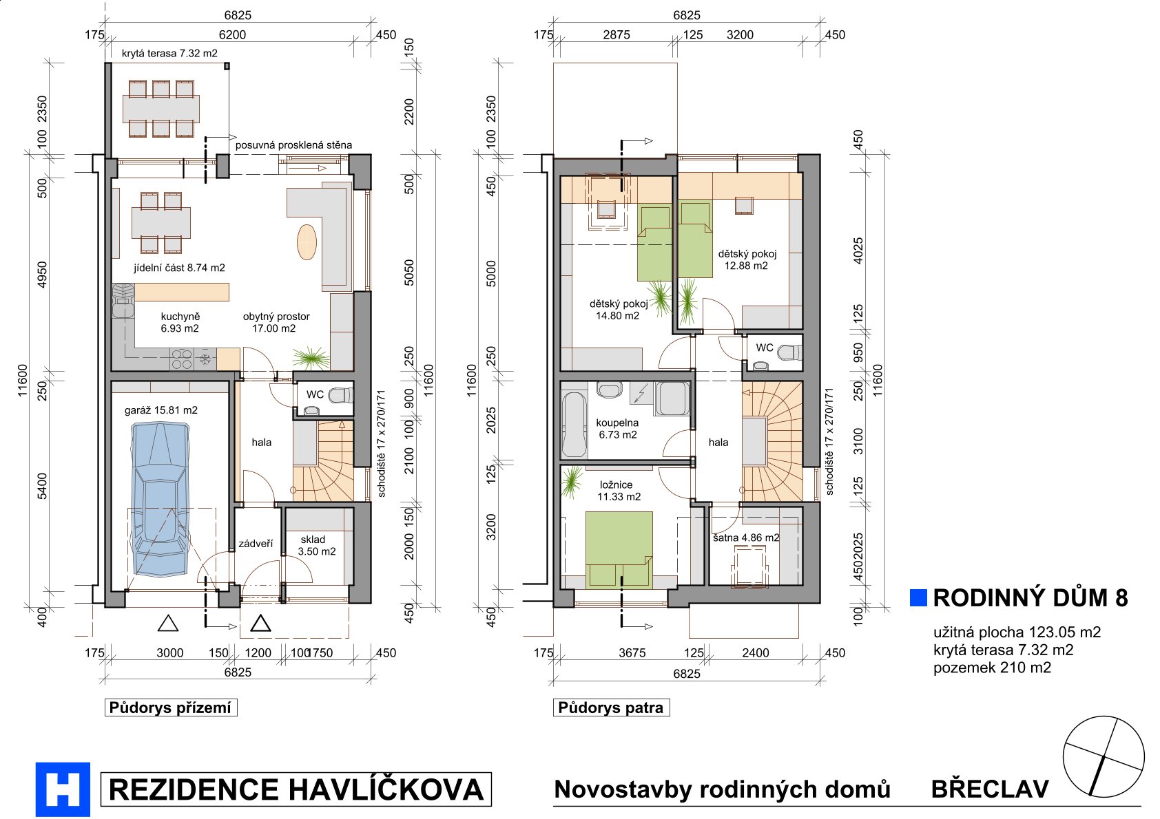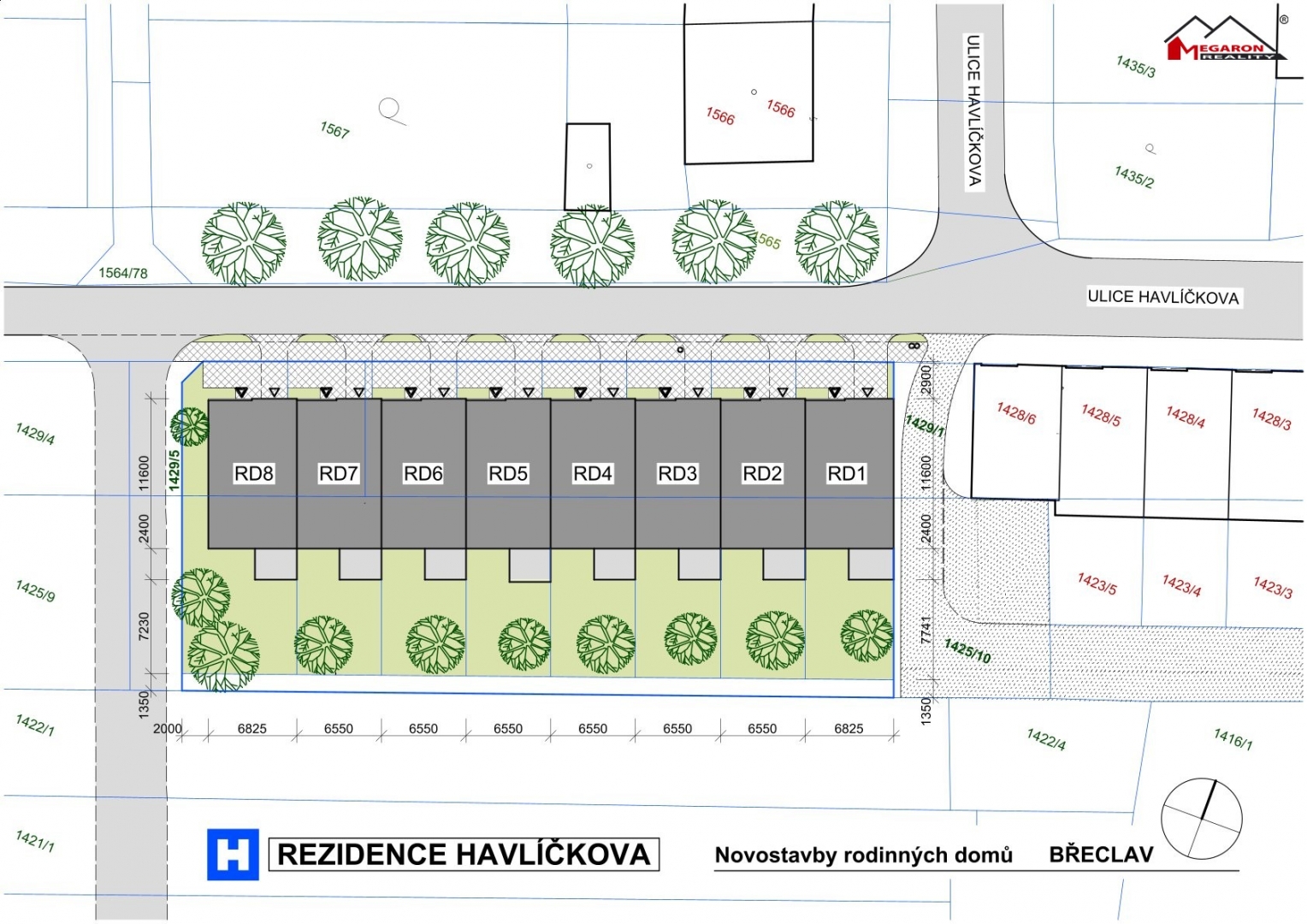 REZIDENCE HAVLÍČKOVA - novostavby 8 RD 4+kk s garáží a terasou, se zahradou, pozemek 159 - 211 m²
