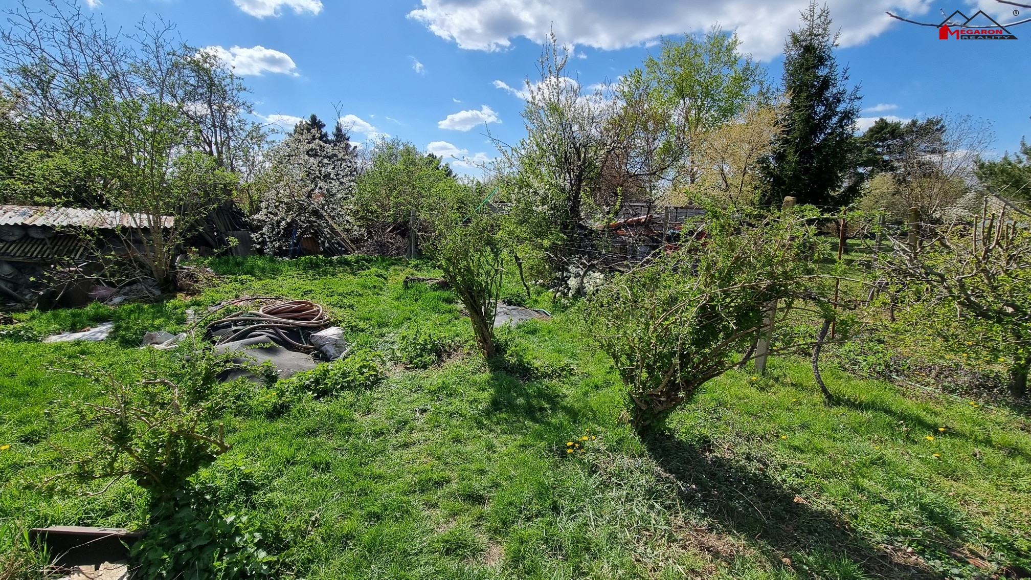 Zahrada se zděnou chatou a bazénem, pozemek 1373 m2